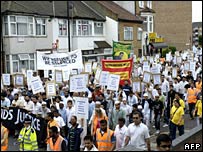 اس مظاہرے کی قیادت کویار نے کی اور مظاہرے کے اختتام پرایک مقامی پارک میں جلسہ بھی کیا گیا۔ مظاہرین اس گھر سے سو گز تک پیدل چلے جس میں پولیس نے چھاپہ مارا تھا۔ مظاہرین نے ایک بینر بھی اٹھا رکھا تھا جس پر درج تھا: ’نیوہیم کے لوگ انصاف کا مطالبہ کرتے ہیں۔ پولیس کا کہنا ہے کہ مظاہرے میں پندرہ سو سے لیکر دو ہزار تک افراد نے شرکت کی۔ منگل کو دونوں بھائیوں نے ایک نیوز کانفرنس کی تھی جہاں انہوں نے جذباتی انداز میں ان تمام واقعات کا ذکر کیا تھا جو پولیس کے چھاپے کے دوران پیش آئے تھے۔ اس کے بعد میٹروپولیٹن پولیس کے نائب اینڈی ہیمین نے ایک بیان میں یہ کہا تھا کہ اگر پولیس کی کارروائی سے کسی کو کوئی تکلیف پہنچی ہے تو وہ معذرت خواہ ہیں۔ مظاہرے کے اختتام پر ایک بیان میں کہا گیا کہ نہ صرف پولیس کمشنر سر ایئن بلیئر بلکہ وزیرِ اعظم ٹونی بلیئر بھی معافی مانگیں۔ | اسی بارے میں ’تشدد ہماری فطرت میں ہی نہیں‘13 June, 2006 | آس پاس پولیس کیخلاف قانونی چارہ جوئی11 June, 2006 | آس پاس لندن میں کیمیکل ڈیوائس کی تلاش03 June, 2006 | آس پاس لندن: بھائیوں کا الزامات سے انکار04 June, 2006 | آس پاس لندن میں چھاپہ، لوگوں میں تشویش07 June, 2006 | آس پاس | ||||||||||||||||||||||||||||||||||||||||