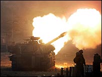 پارلیمنٹ سے خطاب کرتے ہوئے، جسے ٹیلی وژن پر بھی دکھایا گیا، اسرائیلی وزیر اعظم ایہود اولمرت کا کہنا تھا کہ اسرائیلی مطالبات تسلیم ہونے تک لبنان کے خلاف حملے جاری رہیں گے۔ انہوں نے کہا کہ لبنان کی فوج کو ملک کے جنوبی حصے پر اپنا کنٹرول قائم کرنا ہوگا۔ ’ہم جنگ یا براہِ راست کشمکش نہیں چاہتے لیکن اگر یہ ضروری ہوا تو ہم اس سے ڈریں گے نہیں۔‘ گزشہ چھ دنوں میں دو سو کے قریب لبنانی شہری اسرائیلی کارروائیوں میں ہلاک ہوچکے ہیں۔ ادھر حزب اللہ نے اسرائیل میں اب تک سیکنڑوں راکٹ داغے ہیں جن سے بارہ افراد مارے گئے ہیں۔ پیر کو اسرائیل پر حزب اللہ کی جانب سے پھر راکٹ داغے گئے اور حکام کے مطابق ان میں سے ایک ہسپتال کے قریب گرا جس سے چھ افراد زخمی ہوگئے۔