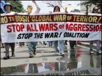 صدر بش جب گراونڈ زیرو گیارہ ستمبر کو مرنے والوں کی یاد میں پھول چڑھا رہے تھے، اسی وقت تھوڑی دور جنگ مخالف مظاہرین امریکہ کی طرف سے دہشت گردی کے خلاف عالمی جنگ کو بند کرنے کا مطالبہ کر رہے تھے۔ گیارہ ستمبر کے موقع پر امریکی وزیر خارجہ کونڈولیزا رائس نے کہا کہ دہشت گردی کے خلاف جنگ کے پانچ سال بعد امریکہ اب پہلے سے زیادہ محفوظ جگہ ہے لیکن اب بھی مکمل طور پر محفوظ نہیں ہے۔ گیارہ ستمبر 2001 کو امریکہ پر ہونے والے دہشت گرد حملوں میں تین ہزار افراد ہلاک ہوئے تھے۔ یہ تقریبات پیر کو بھی جاری رہیں گی اور ان میں گیارہ ستمبر کو ہلاک ہونے والوں کے نام پڑھ کر سنائے جائیں گے۔ یہ تقریبات ایک ایسے موقع پر ہو رہی ہیں جب نومبر کو ہونے والے کانگریس کے مڈٹرم انتخابات سے پہلے بش انتظامیہ کو دہشت گردی کے خلاف جنگ کے سلسلے میں سخت تنقید کا سامنا ہے۔ بش انتظامیہ ان تقریبات کے پیش نظر دہشت گردی کے خلاف جنگ سے متعلق اپنی پالیسی کا دفاع کرتی رہی ہے جبکہ حزب اختلاف بش انتظامیہ پر الزام لگاتی رہی ہے کہ وہ ان تقریبات کو اپنے سیاسی مفاد کے لیئے استعمال کر رہی ہے۔ | اسی بارے میں نائيں ون ون امریکہ اور پاکستانی11 September, 2006 | قلم اور کالم 9/11 اور نیویارک کے مسلمان 10 September, 2006 | قلم اور کالم نیویارک: ایک شہر جو بدل گیا11 September, 2006 | قلم اور کالم 9/11 اور پاکستان، انڈیا اور کشمیر 10 September, 2006 | انڈیا | ||||||||||||||||||||||||||||||||||||||||
