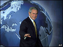 امریکی صدر جارج بش نے نیویارک میں اقوام متحدہ کی جنرل اسمبلی سے خطاب کے دوران مشرق وسطیٰ سے متعلق اپنی متنازعہ پالیسیوں کا دفاع کیا ہے۔ امریکی صدر نے کہا کہ مشرق وسطیٰ میں جمہوریت جڑ پکڑ رہی ہے اور علاقے میں دہشت گرد کمزور ہورہے ہیں۔ جارج بش نے ایران کے متنازعہ ایٹمی پروگرام کا معاملہ بھی جنرل اسمبلی کے سامنے اٹھایا۔ ان کا کہنا تھا کہ وہ اس معاملے کے ایک ’سفارتی حل‘ کے لیے کام کریں گے لیکن ’ایران کو اپنے ایٹمی عزائم ترک کرنے ہوں گے۔‘ جارج بش نے مشرق وسطیٰ سے متعلق امریکی پالیسیوں کا ایسے وقت پر دفاع کیا ہے جب اقوام متحدہ کے سیکرٹری جنرل کوفی عنان نے وارننگ دی ہے کہ عراق میں ’خانہ جنگی‘ کے خدشات ہیں۔