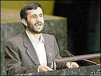 ایرانی صدر احمدی نژاد نے سنیچر کے روز اقوام متحدہ کی سکیورٹی کونسل کے اجلاس میں شرکت کرنے کا اپنا منصوبہ ترک کردیا ہے۔ ایران کا کہنا ہے کہ صدر احمدی نژاد نے نیویارک جانے کا منصوبہ اس لیے ترک کردیا کیوں کہ امریکہ نے انہیں ویزہ دینے میں تاخیر کردی۔ امریکہ نے اس الزام کی تردید کی ہے۔ سکیورٹی کونسل کے اجلاس میں ایرانی صدر احمدی نژاد کا جانا ضروری نہیں ہے لیکن انہوں نے خود ہی اجلاس کے سامنے اپنا موقف پیش کرنے کی خواہش ظاہر کی تھی۔ سفارتی حلقوں میں امید کی جارہی ہے کہ سنیچر کے روز نیو یارک میں ہونے والے اس اجلاس میں ایران پر مزید پابندیاں عائد کردی جائیں گیں۔  | قرارداد کے الفاظ پر اختلافات  برطانیہ اور فرانس نے اس امید کا اظہار کیا ہے کہ سکیورٹی کونسل کے تمام اراکین ایران پر پابندیوں کی قرارداد کے حق میں ووٹ دیں گے۔ نیویارک میں بی بی سی کی نامہ نگار کا کہنا ہے کہ قرارداد کے الفاظ پر جنوبی افریقہ، قطر اور انڈونیشیا کے اختلافات کو نمٹا لیا گیا ہے۔  |