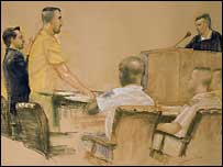 گوانتاناموبے میں قید آسٹریلیا کے شہری ڈیوڈ ہکس کو ایک فوجی عدالت نے نو ماہ قید کی سزا سنائی ہے جو انہیں اپنے آبائی وطن میں پوری کرنا ہو گی۔ دہشت گرد کارروائیوں میں معاونت فراہم کرنے کے اعتراف کے بعد عدالت نے اکتیس سالہ ڈیوڈ کو سات سال قید کی سزا سنائی تاہم نو ماہ کو چھوڑ کر ان کی باقی کی سزا معطل کر دی گئی ہے۔ ڈیوڈ کو افغانستان میں طالبان کے ساتھ لڑائی کے دوران پکڑا گیا تھا۔ وہ پچھلے پانچ سال سے گوانتانامو بے کی جیل میں قید تھے۔ واضح رہے کہ ڈیوڈ پر شدت پسند تنظیم القاعدہ کے کیمپوں سے تربیت حاصل کرنے اور طالبان کے ساتھ مل کر لڑائی کرنے کے الزامات عائد کیے گئے تھے۔ مقدمہ کی ابتدائی سماعت کے دوران انہوں نے اپنے خلاف لگائے الزامات سے جمعہ کی شام سزا سنانی والی عدالت کے جج نے فیصلہ سناتے ہوئے کہا کہ اعتراف کی صورت میں ان کے ساتھ کیے جانے والے سمجھوتے میں واضح طور پر کہا گیا ہے کہ نو ماہ سے زیادہ کوئی بھی سزا معطل کردی جائے گی۔