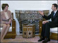 امریکہ کے ایوان نمائندگان کی سپیکر نینسی پلوسی شام کے دارالحکومت دمشق میں صدر بشارالاسد سے ملاقات کی ہے تاہم ابھی تک اس کی تفصیلات موصول نہیں ہوئی ہیں۔ ان کے شام کے دورے پر وائٹ ہاؤس نے شدید تنقید کرتے ہوئے اسے امریکی خارجہ پالیسی کو نقصان پہنچانے کے مترادف قرار دیا ہے۔ ڈیموکریٹ پارٹی کی سرکردہ رکن نینسی پلوسی نے وائٹ ہاؤس کی طرف سے ہونے والے اعتراضات کو مسترد کرتے ہوئے کہا کہ عراق اور لبنان کے معاملات کو حل کرنے کے لیے شام سے مذاکرات بہت ضروری ہیں۔ امریکی ایوان نمائندگان کی سپیکر کا دمشق کے ہوائی اڈے پر شام کے وزیر خارجہ وليد المعلم نے استقبال کیا۔ صدر بشارالاسد اور نیسنی پلوسی نے ملاقات سے پہلے صدرارتی محل کے ایک حصے میں بیٹھ کر ذرائع ابلاغ کے فوٹوگرافروں کو تصویریں لینے کا موقع دیا۔ اس سے قبل نینسی پلوسی نے شام کے وزیرخارجہ ولید المعلم اور نائب صدر فاروق الشرعہ سے بھی ملاقاتیں کیں۔