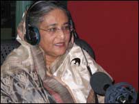 بنگلہ دیش میں حزب اختلاف کی جماعت عوامی لیگ کی رہنما شیخ حسینہ واجد نگران حکومت کی طرف سے لگائی جانے والی تمام پابندیوں کے باوجود اتوار کو لندن سے روانہ ہو کر پیر کو ڈھاکہ پہنچ رہی ہیں۔ ’میں ضرور جاؤں گی، میرا دیش ہے اور مجھے جنتا کی مکمل حمایت حاصل ہے‘۔ یہ بات شیخ حسینہ واجد نے ہفتہ کو بی بی سی اردو سروس کے لندن اسٹوڈیوز میں عمر آفریدی سے ایک خصوصی انٹرویو میں کہی۔ یہ انٹرویو انہوں نے اردو زبان میں دیا۔ شیخ حسینہ واجد نے کہا کہ انہیں نہیں معلوم کہ نگران حکومت کیوں ان کی بنگلہ دیش واپسی میں روکاوٹیں ڈال رہی ہے۔ انہوں نے کہا کہ وہ ان روکاوٹوں کو توڑ کر اپنے عوام کے پاس جائیں گی کیونکہ انہیں جنتا پر پورا بھروسہ ہے۔ پاکستان اور بنگلہ دیش کے تعلقات کے مستقبل کے بارے میں ایک سوال کے جواب میں انہوں نے کہا کہ بنگلہ دیش، بھارت اور پاکستان تینوں دیش علیحدہ ہیں ’لیکن ہمارے درمیان کوئی دراڑ نہیں ہونی چاہیے۔‘ انہوں نے کہا کہ ہمارا مسئلہ ایک ہے اور وہ ہے غربت۔ ’ہمیں چاہیے کہ ہم مل کر اس مسئلہ کو حل کریں اور جنتا کے لیے کام کریں اور ان کا دکھ اور ان کی مشکلات ختم کریں۔‘ شیخ حسینہ واجد نے اس انٹرویو کے دوران انیس سو اکہتر میں پاکستان سے علیحدگی اور بنگلہ دیش کی آزادی کے وقت کی یادوں کے بارے میں بھی بات کی۔