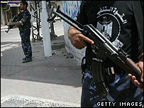 غزہ میں فلسطینیوں کے دھڑوں حماس اور فتح کے درمیان منگل کو دن بھرگھمسان کی جنگ جاری رہی، قومی سکیورٹی فوج کے صدر دفتر پر حملہ ہوا، صدر محمود عباس کے احاطے پر ایک راکٹ پھینکا گیا اور وزیر اعظم اسمٰیل ہنیہ کے مکان پر راکٹ والا گرینیڈ چلایا گیا۔ الفتح نے یہ دھمکی بھی دی ہے کہ اگر مستقل فائر بندی نہ ہوئی تو حماس سے مل کر بننے والی قومی اتحاد کی حکومت کو چھوڑ دیا جائے گا۔ اس نے دھمکی دی ہے کہ کابینہ کے اجلاسوں کا بھی بائیکاٹ کیا جائے گا۔ دو دن سے جاری اس شدی لڑائی میں اب تک چونتیس افراد ہلاک ہو چکے ہیں۔ عینی شاہدوں نے بتایا کہ گزشتہ اٹھارہ ماہ کے دوران میں دونوں فلسطینی دھڑوں کے بیچ یہ بدترین لڑائی ہے۔ منگل کی صبح ہی سے دھماکے اور گولیاں چلنی شروع ہوگئیں اور عام لوگوں کا شہر میں نکلنا محال ہوگیا۔ حماس نے الفتح کو پوزیشنیں چھوڑنے کے لیے دو گھنٹے دیئے تھے اور گرینچ کے معیاری وقت کے مطابق صبح گیارہ بجے جب یہ مہلت ختم ہوئی تو حماس نے حملے شروع کر دیئے۔ حماس کے کارکن رملہ میں فتح کے آدمی ایک نائب وزیر کو پکڑ کے لے گۓ۔ ڈاکٹروں کا کہنا ہے کہ دونوں فریق ہسپتال کی چھت پر مورچہ بند ہیں اور گولیاں چلارہے ہیں۔رات کو فائرنگ اور دھماکوں کے درمیان اذان بھی سنائی دے رہی تھی۔