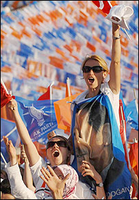 ترکی کی سیاسی تاریخ میں اہم قرار دیئے جانے والے پارلیمانی انتخابات کے لیے ووٹنگ جا رہی ہے۔ ملک کے اگلے صدر کا فیصلہ کرنے کے لیے پارلیمانی انتخابات مقررہ مدت سے چار ماہ قبل ہو رہے ہیں۔ ترکی میں صدر کا انتخاب اس وقت تنازعے کا شکار ہوگیا جب حکومت نے راسخ العقیدہ مسلمان وزیر خارجہ عبداللہ گل کو صدارتی امیدوار نامزد کیا جبکہ فوج اور ملک کے سیکولر حلقوں نے اس نامزدگی کی شدید مخالفت شروع کر دی۔ عبداللہ گل کی نامزدگی کے مخالف حلقوں کا کہنا ہے کہ ان کے صدر بننے سے ترکی کا سیکولر نظام خطرے میں پڑ جائے گا۔ حزب اقتدار کی جماعت نے انتخابی مہم کے دوران اپنی اقتصادی کامیابیوں پر زور دیا ہے جبکہ حزب اختلاف کی جماعتیں حکمران جماعت پر ترکی کے سیکولر نظام کو بگاڑنے کا الزام عائد کرتی رہیں۔ ترکی کی پارلیمنٹ میں پانچ سو پچاس نشتوں پر چودہ جماعتوں کے درمیان انتخابی معرکہ ہو رہا ہے اور اس انتخابی معرکے میں چار کروڑ بیس لاکھ ووٹر اپنی رائے کا اظہار کرینگے۔ دارالحکومت انقرہ سے بی بی سی کی نامہ نگار سارا رینزفورڈ نے اطلاع دی ہے کہ لوگ ساحلی مقامات سے اپنی چھٹیاں ختم کر کے ووٹ ڈالنے کے لیے گھروں کو لوٹ رہے ہیں۔ بی بی سی کی نامہ نگار کے مطابق بہت سے لوگوں کا کہنا تھا کہ وہ ووٹ ڈالنے کے لیے پوری کوشش کر رہے ہیں تاکہ ملک کے سیکولر نظام کو بچایا جا سکے۔ سارا رینزفورڈ نے کہا کہ مذہب ان انتخابات میں ایک اہم معاملہ بن کر سامنے آیا ہے کیونکہ ترکی کے بیرونی دنیا سے مستقبل میں تعلقات کا دار و مدار اسی نکتے پر ہے۔