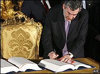 یورپی یونین کے رکن ممالک کے سربراہان نے پرتگال کے دارالحکومت لسبن میں ایک معاہدے پر دستخط کیئے ہیں جس کے تحت ستائیس ممالک پر مشتمل اس ادارے کے کام کرنے کا طریقے کار واضح طور پرتبدیل ہو جائے گا۔ اس معاہدے کے تحت یورپی یونین کے صدر کا باقاعدہ عہدہ قائم کیا جائے گا اور خارجہ امور کے چیف کو مزید بااختیار بنایا جائے گا۔ معاہدے کی دستاویز پر ایک پر وقار تقریب میں دستخط کیئے گئے جو شہر کی ایک تاریخی مذہبی عمارت میں منعقد کی گئی۔ اس معاہدے میں بہت سے پالیسی امور پر ویٹو کے اختیارات کو ختم کر دیا گیا۔ یہ معاہدہ یورپی یونین کے آئین کا متبادل ہو گا جو فرانس اور ہالینڈ کی مخالفت کے بعد رد کر دیا گیا تھا۔ یورپی یونین کے رہنماؤں کا اصرار ہے کہ دونوں دستاویزات بہت مختلف ہیں۔ تاہم لسبن معاہدے میں مجوزہ آئین کی کچھ اصلاحات شامل ہیں اور اس بارے میں کچھ رکن ممالک کی حکومتیں اندرونی دباؤ کا شکار ہیں۔
