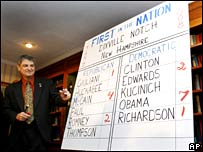 امریکہ میں آئندہ صدارتی انتخابات میں ڈیموکریٹ اور رپبلکن پارٹیوں کی نامزدگی کے حصول کے لیے منگل کو نیو ہیمشائر میں میدان لگ رہا ہے جس میں عوامی جائزوں کے مطابق باراک اوباما اور جان مکین کو سبقت حاصل ہے۔ ڈیموکریٹ پارٹی میں سینیٹر باراک اوباما کی حریف ہیلری کلنٹن نیو ہیمشائر میں اپنی انتخابی مہم کے اختتام پر جذباتی ہو گئیں اور انہوں نےاپنے آنسوں پر قابو پاتے ہوئے عوامی جائزوں پر عدم اعتماد کا اظہار کیا۔ رپبلکن پارٹی میں سینیٹر جان مکین کو اپنے مد مقابل مٹ رومنی پر برتری حاصل ہے۔ نیوہیمشائر میں پرائمریز میں ووٹنگ کا آغاز روائتی طور پر ڈکسوائل نوچ اور ہارٹ لوکیشن کے دو چھوٹے چھوٹے قصبوں سے ہوا جہاں باراک اوباما اور جان مکین کی ابتدائی اطلاعات کے مطابق سبقت برقرار رہی۔ ریاست میں دوسری جگہوں پر پولنگ مقامی وقت کے مطابق صبح چھ بجے سے رات آٹھ بجے تک جاری رہے گی۔ ان انتخابات کے نتائج پولنگ ختم ہونے کے فوری بعد آنا شروع ہو جائیں گے۔ | اسی بارے میں ’مشرف ہمارے قریبی اتحادی ہیں‘04 January, 2008 | آس پاس آئیوا میں اوبامہ اور ہکابی کی برتری04 January, 2008 | آس پاس امریکی پرائمری انتخابات کےلیےمہم07 January, 2008 | آس پاس | ||||||||||||||||||||||||||||||||||||||||