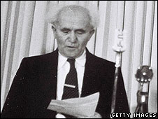 اسرائیل کے صدر شیمون پیریز نے جو سنہ انیس سو اڑتالیس میں ڈیوڈ بین کے مُمِد تھے، بی بی سی کو بتایا کہ یہ دستاویز فلسطینوں کی نقل مکانی کی ذمہ دار نہیں۔ ’میں اس وقت وہاں موجود تھا اور مجھے بالکل پروا نہیں کہ مؤرخ کیا لکھتے ہیں۔ مجھے معلوم ہے کہہ بین نہیں چاہتے تھے کہ عرب ملک سے چلے جائیں۔‘ اردن کے سابق وزیرِ خارجہ جو 1948 میں یروشلم میں صحافی تھے اسرائیلی صدر کی بات پر حیرانی کا اظہار کرتے ہیں۔ ’یہ کہنا کہ فلسطینیوں کی نقل مکانی کی ذمہ دار وہ دستاویز نہیں تو پھر یہ نقل مکانی کس وجہ سے ہوئی۔‘ وہ کہتے ہیں کہ اسرائیلیوں نے اپنے سامنے آنے والے لوگوں کو تہہ تیغ کر دیا۔ ’اسرائیلیوں نے پورے ملک میں بے شمار افراد کو موت کی نیند سلا دیا۔ آپ مجھے بتائیں کہ اگر کسی کو جان کا خطرہ نہ ہو تو کیا وہ کسی اور وجہ سے اپنا گھر چھوڑ کر جائے گا؟‘ آج طاقت حاصل کرنے کے باوجود کچھ اسرائیلی خوفزدہ بھی ہیں۔ انہیں فلسطینی قوم پرستی سے ڈر لگتا ہے۔ اسلامی انتہا پسندوں سے ڈر لگتا ہے جو یہودیوں کو نشانہ بناتے ہیں۔انہیں ایران سے ڈر لگتا ہے۔ لیکن اسرائیلیوں کی نسبت بہت زیادہ فلسطینی گھروں سے اور زندگیوں سے محروم ہوتے ہیں اور وہ کہتے ہیں کہ وہ آفت جو سنہ 1948 میں آئی تھی کبھی ختم نہیں ہوئی۔ امریکی صدر جارج بش کی طرف سے شروع کردہ حالیہ امن عمل ماضی کی تمام ایسی کوششوں کی طرح ناکام ہوگا جبتک وہ ان مسائل کا احاطہ نہ کرے جن کا تعلق براہِ راست 1948 کے واقعات سے ہے۔ دونوں قوموں کی علیحدگی ایجنڈے پر ہے جیسے یہ ساٹھ سال قبل بھی تھی کیونکہ اسرائیل اور فلسطین کے درمیان زمین تقسیم ہونی ہے۔ دونوں فریق یروشلم کو اپنا کہتے ہیں اور فلسطینی پناہ گزین . . . .وہ بس انتظار میں ہیں۔ | اسی بارے میں ’اسرائیلی ریاست ختم ہو جائی گی‘30 November, 2007 | آس پاس فلسطینی ریاست: ایک اور ملاقات06 May, 2008 | آس پاس اس سال امن معاہدے کی توقع05 May, 2008 | آس پاس امریکہ: اسرائیلی جاسوس پر مقدمہ23 April, 2008 | آس پاس اسرائیل:’امریکی عہد غیر متزلزل‘ 23 March, 2008 | آس پاس ’فلسطینیوں کا نسلی صفایا کیا جا رہا ہے‘14 March, 2008 | آس پاس نئی یہودی بستیوں کی تعمیر منظور09 March, 2008 | آس پاس حماس کی بیسویں سالگرہ پر ریلی15 December, 2007 | آس پاس | ||||||||||||||||||||||||||||||||||||||||