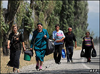 دوسری جانب روس نے تبلیسی کی جانب سے جنگ بندی اور مزاکرات کے اعلان کو مسترد کرتے ہوئے فضائی بمباری جاری رکھی۔جارجیا کے وزارتِ داخلہ کے مطابق تازہ حملہ پیر کی صبح فوجی ٹھکانوں پر کیا گیا ہے جانی نقصان کی ابھی کوئی تفصیلات سامنے نہیں آئی ہیں۔ جورجیا کے قصبےگوری میں دوبارہ حملے کی اطلاعات موصول ہوئی ہیں ہزاروں لاکھوں افراد گوری چھوڑ کر چلے گئے ہیں۔ بی بی سی کے نامہ نگار رچرڈ گیلپن کے مطابق تبلیسی کو جانے والی سڑک بے شمار کاروں کے قافلوں سے جام ہے۔اقوامِ متحدہ کے ادارے برائے پناہ گزین نے فریقین سے کہا ہے کہ وہ جنگ زدہ علاقے سے بھاگنے والے لوگوں کو محفوظ راہداری فراہم کریں۔ |