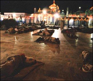 جئیے لطیف بھٹ شاہ آنے والے زائرین کھلے آسمان کے تلے سکھ کی نیند سو رہے ہیں۔ یہاں ہر رات فجر کے وقت تک شاہ کا کلام گایا جاتا ہے۔ ایک خستہ حال لاؤڈ سپیکر بہت دھیمے لہجے میں شاہ کے سُر رات میں بکھیرتا رہتا ہے۔