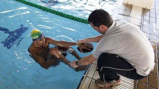 وہ کہتے ہیں ’ہم تیراک کو اس وقت چھوتے ہیں جب وہ پول کے سرے سے دو سے چار میٹر دور ہوتا ہے۔ اس کام میں مل کر ٹریننگ کرنا پڑتی ہے اور ایک دوسرے پر اعتماد کرنا پڑتا ہے۔‘