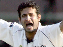 عاصم کے آؤٹ ہونے کے بعد منصور امجد میدان میں آئے مگر دس گیندوں کا سامنا کرنے کے بعد بغیر کوئی رن بنائے ظہیر خان کی گیند پر ایل بی ڈبلیو ہو گئے۔ جب چھٹی وکٹ گری تو پاکستان اے کا مجموعی سکور 227 رن تھا۔ یکے بعد دیگرے دو وکٹیں گرنے کے بعد پاکستان اے کے بلے بازوں پر دباؤ میں اضافہ ہو گیا تاہم وکٹ کیپر ذوالقرنین حیدر اور فیصل اقبال نے محتاط انداز سے بلے بازی کی اور بھارتی بولروں کو کھانے کے وقفے تک مزید کوئی وکٹ حاصل نہیں کرنے دی۔ لنچ کے بعد وکٹ کیپر ذوالقرنین حیدر 35 رن بنا کر عرفان پٹھان کی گیند پر ایل بی ڈبلیو ہوگئے۔ جب پاکستان کا سکور 337 پر پہچنا تو فیصل اقبال اپنی نصف سنچری مکمل کرنے کے بعد 87 رن بنا کر آؤٹ ہو گئے۔ انہیں اگرکر نے آؤٹ کیا۔ بھارت نے اپنی پہلی اننگز میں سات وکٹ کے نقصان پر چار سو چودہ رن بنائے تھے اور اس کے ابتدائی چھ بلے بازوں نے نصف سنچریاں سکور کیں تھیں۔ پاکستان اے: عمران فرحت، فیصل اقبال، محمد وسیم، حسن رضا، بازید خان، عاصم کمال، ذوالقرنین حیدر، محمد ارشاد، راؤ افتخار، منصور امجد، عمر گل، یاسر عرفات بھارت: گوتم گمبھیر، وسیم جعفر، راہول ڈراوڈ، سچن تندولکر، وی وی ایس لکشمن، یوراج سنگھ، مہندر دھونی، عرفان پٹھان، اجیت اگرکر، ہربھجن سنگھ، ظہیر خان، ردرا پرتاپ سنگھ | اسی بارے میں | ||||||||||||||||||||||||||||||||||||||||