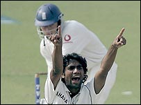 انگلینڈ کی دوسری اننگز میں کپتان اینڈریو فلنٹاف اور این بیل کے علاوہ کوئی کھلاڑی بھی جم کر نہ کھیل سکا۔ ان دونوں کھلاڑیوں نے نصف سنعریاں کسور کیں۔ اینڈریو فلنٹاف آؤٹ ہونے والے آخری انگلش کھلاڑی تھے۔ بھارت کی جانب سے پہلا ٹیسٹ کھیلنے والے فاسٹ بولر مناف پٹیل نے دوسری اننگز میں چار انگلش کھلاڑیوں کو آؤٹ کیا ہے اور اس طرح میچ میں مجموعی طور پر سات وکٹیں حاصل کیں۔ موہالی ٹیسٹ کا پہلے دودن کا کھیل بارش اور کم روشنی کی وجہ سے متاثر ہوا تھا۔ اس میچ میں انگلینڈ نے اپنی پہلی اننگز میں 300 جبکہ انڈیا نے338 رن بنائے تھے۔ انڈیا،انگلینڈ سیریز کا آخری ٹیسٹ میچ اٹھارہ سے بائیس مارچ تک ممبئی میں کھیلا جائے گا۔ انگلش ٹیم: اینڈریو سٹراس، الیسٹر کک، این بیل، پال کولنگ ووڈ، کیون پیٹرسن، اینڈریو فلنٹاف، لیئم پلنکٹ، میتھیو ہوگارڈ، سٹیو ہارمیسن اور مونٹی پنیسر۔ انڈین ٹیم: وریندر سہواگ، وسیم جعفر، راہول ڈراوڈ، سچن تندولکر، یوراج سنگھ، مہندر دھونی، انیل کمبلے، پیوش چاؤلہ، ہربھجن سنگھ، عرفان پٹھان اور مناف پٹیل۔ | اسی بارے میں موہالی: انگلینڈ کی5 وکٹیں گرگئیں12 March, 2006 | کھیل ڈراوڈ کی ففٹی، بھارت کے چار آؤٹ11 March, 2006 | کھیل کم روشنی کےباعث کھیل ختم09 March, 2006 | کھیل لکشمن اور کیف انڈین ٹیم سے باہر08 March, 2006 | کھیل ناگپور ٹیسٹ ڈرا ہوگیا05 March, 2006 | کھیل ایلسٹر کک کی شاندار سنچری04 March, 2006 | کھیل محمد کیف سینچری مکمل نہ کر سکے03 March, 2006 | کھیل ناگپور: بھارت کا بھرپور جواب02 March, 2006 | کھیل | ||||||||||||||||||||||||||||||||||||||||