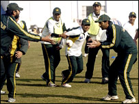 پیر کو قذافی سٹیڈیم لاہور میں دورۂ انگلینڈ کے لیئے پاکستان کی کرکٹ ٹیم کے تربیتی کیمپ کا دوسرا حصہ شروع ہوگیا ہے۔ پاکستانی ٹیم کے لیئے منتخب شدہ سولہ کھلاڑیوں میں سے تیرہ نے پہلے دن تربیت میں حصہ لیا۔ انگلینڈ میں کاؤنٹی کھیلنے والے کھلاڑی محمد آصف اور رانا نوید الحسن نے کیمپ میں رپورٹ نہیں کیا البتہ کوچ باب وولمر کا کہنا تھا کہ وہ ایک دو دن میں کیمپ میں آ جائیں گے۔ کپتان انضمام الحق نے طبیعت کی ناسازی کے سبب تربیتی کیمپ میں شرکت نہیں کی۔ پاکستان کی ٹیم کے بالنگ کوچ وقار یونس بھی پیٹ کی خرابی کے سبب کیمپ میں تربیت دینے نہیں آئے۔ پیر سے شروع ہونے والے کیمپ کی خاص بات جنوبی افریقن فیلڈنگ کوچ جونٹی رہوڈز کی پاکستانی ٹیم کو فیلڈنگ تربیت تھی۔ انہوں نےصبح اور شام کے دونوں سیشنز میں کھلاڑیوں کو اچھی فیلڈنگ کےگُر بتائے۔ جونٹی رہوڈز نے کہا کہ انہوں نے آج صرف کھلاڑیوں کو بنیادی تکنیک کے بارے میں بتایا ہے۔ ان کا کہنا تھا کہ’ آغاز میں کھلاڑی یہ سوچ کر پریشان تھے کہ نہ جانے میں انہیں کیسے سکھاؤں گا لیکن بعد میں وہ خوش تھے‘۔