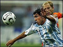 فرینکفرٹ میں ارجنٹینا اور ہالینڈ کے درمیان گروپ سی میں کھیلا جانے والا دلچسپ مقابلہ برابری پر ختم ہوگیا ہے۔ دونوں ٹیموں نے ایک دوسرے کے خلاف گول کرنے کی کئی کوششیں کی لیکن کوئی بھی کامیاب نہ ہو سکی۔ بدھ کے میچ کے بعد ارجنٹینا اور ہالینڈ دونوں ہی کے سات سات پوائنٹس ہیں۔تاہم بہتر گول اوسط کی بنا پر ارجنٹینا کی ٹیم گروپ سی میں سرِ فہرست آ گئی ہے۔ ارجٹینا اپنا اگلا میچ ہفتے کو میکسیکو کے خلاف جبکہ ہالینڈ اتوار کو پرتگال کے خلاف کھیلے گا۔ میچ کی دلچسی کا عالم یہ تھا کہ پلیئر ریٹر کے جائزے کے مطابق اناسی فیصد فٹبال شائقین نے کہا کہ ہالینڈ اور ارجنٹینا کا میچ انتہائی دلچسپ ہوگا۔ میچ کے دوسرے ہاف میں ہالینڈ کی ٹیم نے نسبتاً بہتر کھیل کا مظاہرہ کیا اور ان کی پاسنگ کافی بہتر رہی۔ تاہم ان کے تین کھلاڑیوں کو پیلا کارڈ دکھا کر وارننگ بھی دی گئی۔ میچ پر تبصرہ کرنے والوں کا کہنا ہے کہ ہالینڈ کی ٹیم نے پورے میچ میں بہت اچھے دفاعی کھیل کا مظاہرہ کیا ہے۔ غالباً اسی وجہ سے ہالینڈ کی ٹیم نے ارجنٹینا کے گول پر اتنے حملے نہیں کیئے جتنے ارجنٹینا کی ٹیم نے ہالینڈ کے خلاف کیئے۔ اس سے قبل فٹبال کے اٹھارہویں عالمی کپ میں بدھ کوگروپ ڈی میں پرتگال نے میکسیکو کو ایک کے مقابلے میں دو گول سے ہرا کر کامیابی حاصل کر لی ہے۔ پرتگال نے اپنے گروپ کے تینوں میچوں میں کامیابی حاصل کر کے نو پوائیٹ حاصل کیئے ہیں۔ گروپ ڈی کے دوسرے میچ میں ایران اور انگولا کے درمیان ایک ایک سے برابر رہا۔ میکسیکو اپنا میچ ہار کر بھی اگلے راونڈ میں داخل ہو گئی ہے۔ ایران اور انگولا کے درمیان میچ برابر رہنے سے میکسیکو چار پوائنٹس کے ساتھ اپنے گروپ میں دوسرے نمبر پر آ گیا ہے۔ پرتگال کی جانب سے پہلا گول منیش نے کھیل کے ابتدائی لمحات میں کیا۔کھیل کے بائیسویں منٹ میں میکسیکو کے کپتان کے ڈی میں ہینڈ بال پر پرتگال کو پنلٹی کک ملی جس پر سبروسا نے دوسرا گول کر دیا۔میکسیکو کی جانب سے فونسیکا نے کھیل کے انتیسویں منٹ میں کارنر کک پر ہیڈ کے ذریعےگول کر کے پرتگال کی برتری آدھی کر دی۔ گروپ ڈی کے دوسرے میچ میں ٹورنامنٹ میں اپنا آخری میچ کھیلنے والی ایران کی ٹیم انگولا کا مقابلہ کر رہی ہے اور ان دونوں ٹیموں کا مقابلہ تاحال بغیر کسی گول کے برابر ہے۔