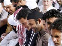 یونس خان اپنے کوچ باب وولمر کے ساتھ پریس کانفرنس میں پاکستان کرکٹ بورڈ کے چئرمین کے مذہب سے متعلق بیان پر کچھ پریشان سے نظر آئے۔ ان کا کہنا تھا کہ ٹیم کے اراکین کے درمیان مذہب کا کوئی ایشو نہیں ہے کیونکہ تقریبًا سب ہی کھلاڑی مسلمان ہیں۔ پچھلے سال سے پاکستانی کھلاڑیوں نے جماعت کے ساتھ نماز پڑھنے کا سلسلہ شروع کیا ہے چاہے وہ میدان میں ہوں یا ہوٹل میں۔ موہالی میں جہاں پاکستانی کھلاڑی ٹھہرے ہوئے ہیں وہاں ان کے لیئے خاص طور پر عید کے موقع پر سویاں اور دوسری مٹھائیاں بنائی گئیں۔ | اسی بارے میں پاکستان نے پہلا میچ جیت لیا17 October, 2006 | کھیل | ||||||||||||||||||||||||||||||||||||||||