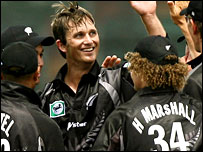 نیوزی لینڈ کی ٹیم کا آغاز اچھا نہ تھا اور اس کے دونوں اوپنر صرف سات کے مجموعی سکور پر پویلین لوٹ چکے تھے۔ تاہم آر ٹیلر نے پہلے کپتان سٹیفن فلیمنگ اور پھر فلٹن کے ساتھ مل کر اپنی ٹیم کو سہارا دیا۔ جب وہ بیاسی گیندوں پر چوراسی رن بنا کر آؤٹ ہوئے تو نیوزی لینڈ کا سکور چار وکٹ کے نقصان پر ایک سو اکسٹھ رن تھا۔ نیوزی لینڈ کے بقیہ کھلاڑ،ی کسی قابلِ ذکر کارکردگی کا مظاہرہ نہ کر سکے اور بقیہ چھ وکٹیں مجموعی سکور میں صرف تئیس رن کے اضافے کے بعدگرگئیں۔ آسٹریلیا کی جانب سے تمام بالروں نے عمدہ بالنگ کا مظاہرہ کیا اور جونسن کلارک اور سائمنڈز نے دو، دو جبکہ ہلفیناس، وائٹ اور بریکن نے ایک،ایک وکٹ حاصل کی۔ کامن ویلتھ بنک سیریز میں اب تک آسٹریلیا نے اپنے دونوں میچ جیتے ہیں جبکہ انگلینڈ اور نیوزی لینڈ کی ٹیمیں فی الحال فتح سے محروم ہیں۔ | اسی بارے میں سڈنی: آسٹریلیا نے انگلینڈ کو ہرا دیا09 January, 2007 | کھیل پہلے ون ڈے میں انگلینڈ کی شکست12 January, 2007 | کھیل | ||||||||||||||||||||||||||||||||||||||||