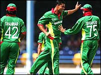 عالمی کپ 2007 کے گروپ بی کے انڈیا اور بنگلہ دیش کے درمیان ٹرینیڈاڈ میں ہونے والے میچ میں انڈیا کے 191 رنز کے ہدف کے تعاقب میں بنگلہ دیش کی ٹیم نے ایک کھلاڑی کے نقصان پر ستائیس رنز بنائے ہیں۔ بنگلہ دیش کے آؤٹ ہونے والے اوپنگ بیٹسمین شہریار نفیس، ظہیر خان کی گیند پر ایل بی ڈبلیو ہوئے۔ انہوں نے دو رنز بنائے۔ اس سے قبل پہلے کھیلتے ہوئے انڈیا کی پوری ٹیم اننچاس اعشاریہ تین اوورز میں 191 رنز بنا کر آؤٹ ہو گئی تھی۔ بنگلہ دیش کے بولرز میچ پر حاوی نظر آئے، خاص طور پر مشرف مرتضیٰ نے 38 رنز کے عوض چار کھلاڑیوں کو آؤٹ کیا۔ عبدالرزاق اور محمد رفیق نے تین تین وکٹیں لیں اور انڈین بیٹنگ لائن کو تباہ کر کے رکھ دیا۔ انڈیا کے بلے باز بنگلہ دیش کی نسبتاً ناتجربہ کار ٹیم کے سامنے اپنی بلے بازی کا جادو دکھانے میں ناکام رہے۔ انڈیا کے سٹار بیٹسمین سچن تندولکر کے سات رنز کے انفرادی سکور پر آؤٹ ہونے کے بعد گنگولی نے اننگز کو سہارا دینے کی کوشش کی مگر ان کے آؤٹ ہونے کے بعد کوئی بلے باز بھی جم کر نہ کھیل سکا اور ایک کے بعد ایک وکٹ گرتی رہی۔ انڈیا کے آؤٹ ہونے والے آخری کھلاڑی مناف پٹیل مشرف مرتضیٰ کا شکار بنے اور پندرہ رنز کے انفرادی سکور پر ان کا کیچ عبدالزاق نے لیا۔ اجیت آگرکر اور ہربجن سنگھ کوئی رن بنائے بغیر آؤٹ ہوگئے۔ یوراج سنگھ 47 رنز بنا کر عبدالرزاق کی گیند پر حبیب البشر کے ہاتھوں کیچ آؤٹ ہوئے۔