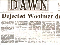 پاکستانی کرکٹ ٹیم کی آئرلینڈ کے ہاتھوں شکست کے بعد ورلڈ کپ سے باہر ہونے اور کوچ باب وولمر کی المناک موت کی خبر کو پاکستان کے تمام ہی اخبارات نے شہ سرخیوں میں جگہ دی ہے۔ ویسٹ انڈیز اور پاکستان کے وقت میں تقریباً آٹھ گھنٹے فرق کی وجہ سے پاکستانی شکست کی کوریج پیر کے اخبارات میں مفصل اور غیرمعمولی انداز میں ہوئی ہے لیکن باب وولمر کے اچانک انتقال کی خبر آئرلینڈ کے ہاتھوں شکست کی خبر پر حاوی دکھائی دیتی ہے۔ روزنامہ جنگ کراچی نے صفحہ اول پر خبر دی ’ پاکستانی کرکٹ ٹیم کے کوچ باب وولمر دل کا دورہ پڑنے سے چل بسے۔‘ اخبار نے شہ سرخی کے ساتھ قومی ٹیم کی شکست پر ملک کے مختلف شہروں میں ہونے والے مظاہروں کی خبر بھی شائع کی ہے تاہم کھیلوں کے صفحے پر اس کی شہ سرخی سب کی توجہ حاصل کرتی ہے جو کچھ اس طرح ہے ’پاکستانی کرکٹ سبائنا پارک میں دفن ہوگئی۔‘ اسی اخبار نے ایک تصویر بھی شائع کی ہے جس میں پشاور کے مشتعل کرکٹ شائقین پاکستانی کپتان انضمام الحق، یونس خان اور شعیب ملک کے پوسٹر نذر آتش کر رہے ہیں۔ روزنامہ ’ایکسپریس‘ نے صفحہ اول پر لکھا ’ کرکٹ ٹیم کی شرمناک شکست پر ملک بھر میں غم وغصہ، کوچ باب وولمر دل کا دورہ پڑنے سے انتقال کرگئے۔‘ اسی اخبار نے کھیلوں کے صفحات پر سابق ٹیسٹ کرکٹرز کا شکست پر شدید ردعمل بھی نمایاں انداز میں شائع کیا ہے۔ انگریزی اخبارات دی نیوز، نیشن اور ڈیلی ٹائمز نے بھی پہلے صفحات پر وولمر کے انتقال کی خبر شائع کی ہے جبکہ ڈان نے صفحہ اول پر وولمر کی تصویر کے ساتھ سرخی لگائی ہے dejected woolmer dead یعنی ’دلبرداشتہ وولمر انتقال کر گئے۔‘ |
