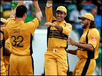 عالمی کپ میں آسٹریلیا کو ہرانے والی آخری ٹیم پاکستان تھی لیکن وہ میچ تو بس اب ایک دھندلی سی یاد بن چکا ہے۔ یہاں جس سے بھی بات کرو، زیادہ تر لوگ کہتے ہیں کہ اس طرح کا ’ڈومینیشن‘ (غلبہ) کھیل کے لیے اچھا نہیں، اور اب آسٹریلیا کو ہارنا چاہیےگ اس کے باوجود زیادہ تر لوگ یہ اعتراف بھی کرتے ہیں کہ موجودہ فارم کو دیکھتے ہوئے آسٹریلیا کو مسلسل تیسری بار بھی اس اعزاز سے محروم کرنا مشکل ہی نظر آتا ہے۔ لیکن کرکٹ کے بارے میں کہا جاتا ہے کہ کچھ بھی ہو سکتا ہے اور صرف ایک خراب میچ آسٹریلیا کی حکمرانی کا تختہ پلٹ سکتا ہے اور یہ نہیں بھولنا چاہیے کہ سیمی فائنل میں اس کا مقابلہ ایک ایسی ٹیم سے ہے جو صرف چند روز پہلے تک، ایک روزہ میچوں کے لیے آئی سی سی کی رینکنگ کے حوالے سے دنیا کی نمبر ون ٹیم تھی۔ | اسی بارے میں آسٹریلیا ’مِنی فائنل‘ جیت گیا16 April, 2007 | کھیل سری لنکا، آسٹریلیا کا مِنی فائنل15 April, 2007 | کھیل آسٹریلیا، جنوبی افریقہ فیورٹ: انضی14 April, 2007 | کھیل آسٹریلیا باآسانی جیت گیا 13 April, 2007 | کھیل اینٹیگا: آسٹریلیا کی آسان جیت08 April, 2007 | کھیل آسٹریلیا کی دس وکٹوں سے جیت31 March, 2007 | کھیل بنگلہ دیش، آسٹریلیا کا مقابلہ آج31 March, 2007 | کھیل آسٹریلیا کی دس وکٹوں سے جیت31 March, 2007 | کھیل | ||||||||||||||||||||||||||||||||||||||||