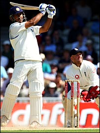 وسیم جعفر اور دنیش کارتک نے بھارتی اننگز کا آغاز کیا۔ ان دونوں بلے بازوں نے پہلی وکٹ کی شراکت میں باسٹھ رن بنائے۔جعفر انڈیا کے آؤٹ ہونے والے پہلے کھلاڑی تھے جو کھانے کے وقفے سے قبل پینتیس رن بنا کر اینڈرسن کی گیند پر پیٹرسن کے ہاتھوں کیچ ہوئے۔ ابتدائی نقصان کے بعد کپتان راہول ڈراوڈ اور دنیش کارتک نے ذمہ دارانہ بلے بازی کا مظاہرہ کیا اور سکور کو ایک سو نواسی تک پہنچ دیا۔ اس موقع پر ڈراوڈ اپنی اڑتالیسویں ٹیسٹ نصف سنچری مکمل کرنے کے بعد پچپن کے انفرادی سکور پر جیمز اینڈرسن کی گیند پر بولڈ ہوگئے۔ کارتک اور ڈراوڈ کے درمیان 127 رن کی شراکت ہوئی۔ بھارت کی تیسری وکٹ 189 کے مجموعی سکور میں صرف دس رن کے اضافے کے بعد گری جب کارتک سائیڈ بوٹم کی گیند پر وکٹ کیپر پرائر کو کیچ دے بیٹھے۔ دنیش کارتک نو رنز کی کمی سے سنچری مکمل نہ سکے۔ کارتک کے آؤٹ ہونے کے بعد سورو گنگولی کریز پر آئے اور انہوں نے سچن تندولکر کے ساتھ مل کر انگلش بلے بازوں کے خلاف عمدہ سٹروک کھیلے۔ بھارت کی چوتھی وکٹ 276 کے مجموعی سکور پرگری جب گنگولی کو کالنگ وڈ کی گیند پر ایل بی ڈبلیو قرار دیا گیا۔ ٹرینٹ برج ٹیسٹ میں دونوں ٹیموں کے کھلاڑیوں میں تلخ کلامی اور انگلش کھلاڑیوں کے جیلی بین پھینکے جانے کے واقعات کے برعکس اوول میں برطانوی ٹیم کے کھلاڑی خاموش رہے اور انہوں نے محالف ٹیم کے بلے بازوں پر فقرے کسنے سے گریز کیا۔ |