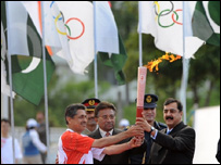چین کی جانب محو سفر اولمپک مشعل کو بدھ کو پاکستان میں ایک رنگا رنگ تقریب میں روشن کیا گیا۔ سخت حفاظتی انتظامات میں ہونے والی محدود سی یہ تقریب پُر امن رہی اور کوئی نا خوشگوار واقعہ پیش نہیں آیا تاہم بعض حاضرین نے مشعل کو صرف ایک سٹیڈیم کے اندر محدود کر دینے پر مایوسی کا اظہار کیا۔ صدر مملکت جنرل (ریٹائرڈ) پرویز مشرف اور وزیر اعظم یوسف رضا گیلانی کی آمد کے ساتھ ہی اسلام آباد کےجناح سپورٹس کمپلیکس میں ہونے والی مشعل برداری کی اس رنگا رنگ تقریب کا آغاز فوجی بینڈ کے مظاہرے سے ہوا۔ تقریب کے لیے سجائے گئے خصوصی سٹیج کے سامنے دو اونچے اونچے پنڈالوں پر موجود حاضرین نے، جن میں ایک بہت بڑی تعداد سکول کے بچوں کی تھی، مشعل کی آمد کے اعلان پر صدارتی گارڈز کے خصوصی گُھڑ سوار دستے پر اولmپک مشعل کے شعلے کو لانے والی خصوصی لالٹین کا پرجوش استقبال کیا۔ اس شعلے کو سٹیج پر لایا گیا جہاں پاکستان اولمپک ایسوسی ایشن کے سربراہ لیفٹنٹ جنرل (ر) عارف حسن نے استقبالیہ کلمات کہے جس کے بعد صدر اور وزیراعظم کو سٹیج پر آنے کی دعوت دی گئی۔ سٹیج پر اس حفاظتی لالٹین سے اولمپک مشعل کو روشن کیا گیا۔ صدر اور وزیراعظم نے مشترکہ طور پر یہ مشعل پاکستان کے ہاکی لیجنڈ اور سابق کپتان سمیع اللہ کے حوالے کی۔ سمیع اللہ کے بعد یہ مشعل پاکستان کے پینسٹھ مایہ ناز سابق اور موجودہ کھلاڑیوں کے ہاتھوں ہوتی ہوئی سکواش کے سابق چیمپئین جہانگیر خان کے پاس پہنچی جہنوں نے لیاقت جمنیزیئم میں موجود بڑی مشعل کو روشن کیا۔ تقریب کے میزبان لیفٹنٹ جنرل عارف حسن نے تقریب کے بارے میں بتایا کہ پاکستان کے لیے یہ بہت فخر کی بات ہے کہ اسے ان انیس ممالک میں منتخب کیا گیا جہاں اس مشعل نے چین پہنچنے سے پہلے جانا ہے۔ حفاظتی لالٹین کے ذریعے اولمپک مشعل کا یہ شعلہ جہاز کے ذریعے منگل اور بدھ کی درمیانی شب اسلام آباد پہنچا تھا۔حفاظتی نکتہ نظر سے ان تقریبات کو اصل پروگرام کے مقابلے میں بہت مختصر کر دیا گیا تھا۔ ابتدائی پروگرام کے مطابق ، اولمپکس مشعل برداروں کو تین کلومیٹر کا فاصلہ طے کر کے، استقبالیہ تقریب کے لیے سپورٹس سٹیڈیم پہنچنا تھا ۔ تاہم سیکورٹی خدشات کے پیش نظر شہر کا دورہ منسوخ کر دیا گیا۔