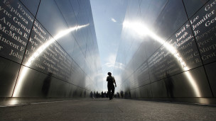 نیویارک میں ہلاک ہونے والوں کے رفقاء اور دوسرے لوگ جمع ہو کر ورلڈ ٹریڈ سنٹر، واشنگٹن اور پینسلوینیا میں ہلاک ہونے والے افراد کے نام گیارہ ستمبر کی یادگار پر پڑھ رہے ہیں۔