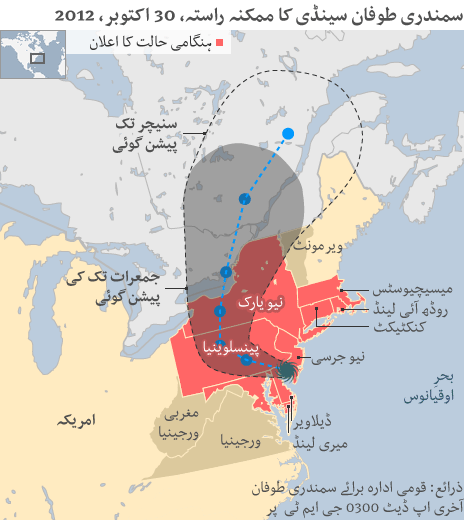 سمندری طوفان سینڈی کے امریکہ کے مشرقی ساحل سے ٹکرانے کے بعد صدر براک اوباما نے منگل کو نیو یارک ریاست کو ’شدید آفت زدہ‘ علاقہ قرار دے دیا تھا۔