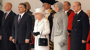Президент Гул Британияда қиролича билан учрашувга ҳижобли рафиқаси билан бирга келган