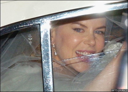 Kidman mặc bộ đồ cưới màu trắng truyền thống và đi cùng người cha trong chiếc xe limousine.
