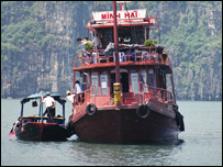 Nguyên nói là “Khỏi lo, chúng ta sẽ rời bến trước vì mọi chuyện đã được sắp xếp hết rồi, nào đi thôi!” Giọng Nguyên buồn như đi đưa đám mặc dù anh có vẻ như biết rõ việc mình làm. Và một trong số chiếc tàu ọp ẹp hai tầng 45 chỗ ngồi chính là tàu của chúng tôi. Thế rồi tôi cảm thấy như nắp quan tài hé mở khi bắt đầu nhìn thấy khung cảnh Vịnh dần dần lộ ra sau một hồi ngồi trên tàu. Rồi cảnh quan bắt đầu hiện lên với hương vị của mặt trời và nước biển. Di sản Văn hóa Thế giới, vẻ đẹp của thiên nhiên, tuyệt thật! Bài viết thể hiện quan điểm riêng của tác giả, một người nước ngoài sống tại Hà Nội. Quí vị có ý kiến xin mời góp ý tại vietnamese@bbc.co.uk
