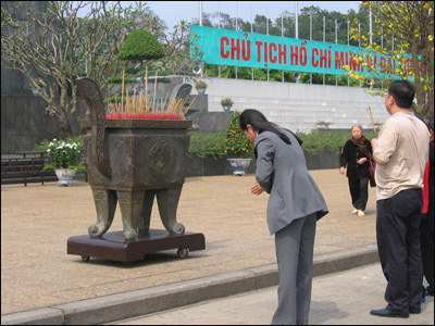 Trong lúc nhiều người đổ tới các chùa để lễ Tết, cũng có người tới lăng Hồ Chủ Tịch