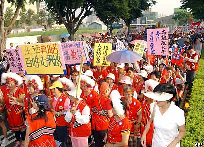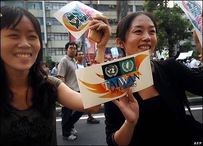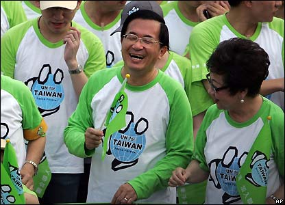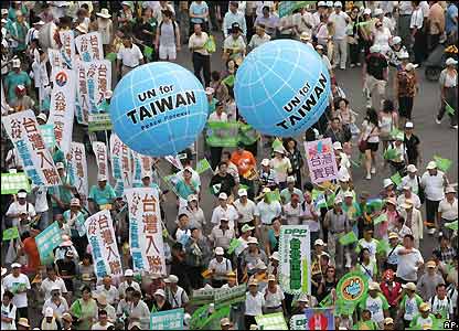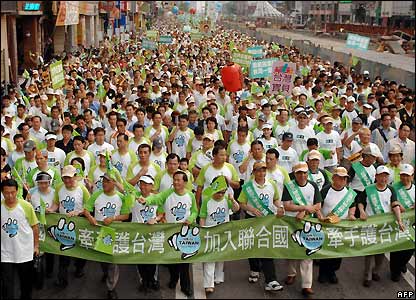 Hàng chục ngàn người Đài Loan tuần hành tại thành phố cảng Cao Hùng hôm 15/9/07 để bày tỏ ủng hộ cho kế hoạch của đảng cầm quyền muốn tổ chức cuộc trưng cầu dân ý về việc trở thành thành viên của Liên Hiệp Quốc.
