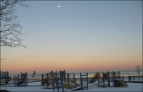 Đường tới khu này chạy ven Hồ Michigan với các công viên và khu vui chơi cho trẻ em.