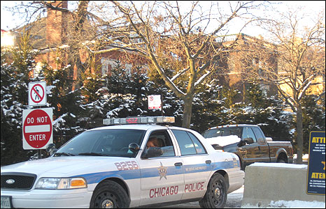 Xe cảnh sát đỗ ngay sát nhà ông Obama, trên đường dẫn vào cổng chính...