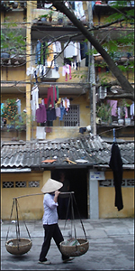 Khu tập thể Giảng Võ sớm phải nhường chỗ cho các chung cư cao tầng hiện đại, nhưng đường phố Hà Nội có bao giờ vắng bóng những gánh hàng rong? (Ảnh Vũ Nhật Tân, HN)
