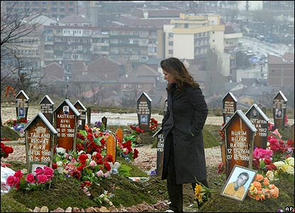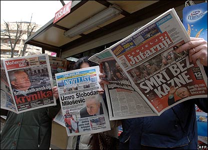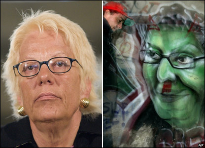 Công tố trưởng tòa La Hay Carla del Ponte kêu gọi truy bắt thêm các tội phạm chiến tranh, nhưng nhìn hình của bà bị vẽ bậy lên ở Belgrade cũng thấy được thái độ người Serbia thế nào. | |||||||||||||||||||||||||||||||||||||||||||||||||||||||||||||||||||||||||||||
