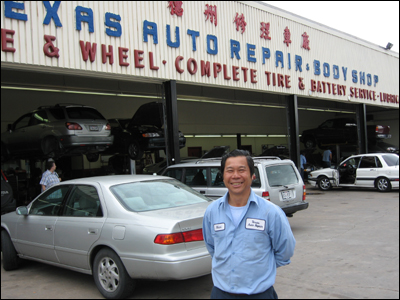Anh Giang Muối, người Việt gốc Hoa hiện đang làm chủ một garage sửa xe lớn tại khu Midtown. Rời Việt Nam bằng thuyền năm 1979, đến Houston bắt đầu từ công việc nặng nhọc, “Nhưng bây giờ có khi còn vất vả hơn trước chú ơi, vì làm chủ mà,” anh Muối tâm sự.