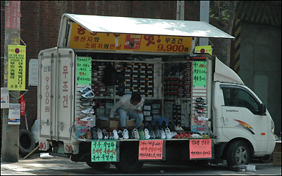 Một chiếc xe tải nhỏ cũng đủ để chuyển thành một cửa hàng di động, bày ngay góc đường mà không sợ công an giao thông hay cảnh sát khu vực làm khó dễ.