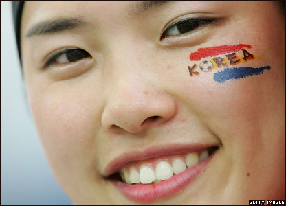 Fan Hàn quốc cổ vũ cho đội nhà trong trận thắng Togo 2-1 hôm 13/6 tại Frankfurt.