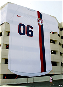 Nike sản xuất chiếc áo khổng lồ này treo ở Connecticut để ủng hộ đội Mỹ.