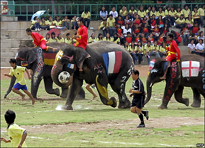 Đội voi mang màu cờ của các nước hiện đang tranh World Cup 2006 tại Đức.