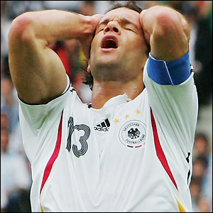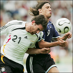 Phút 17, Michael Ballack có cú đánh đầu nguy hiểm