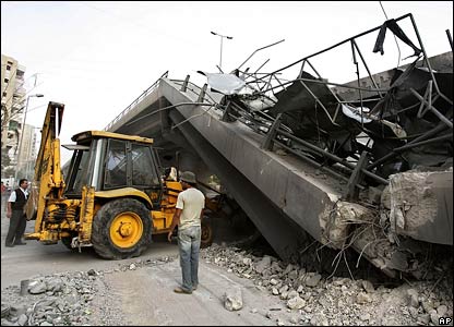 Các công nhân ở Beirut bắt đầu dọn dẹp ở một cây cầu bị đánh bom