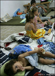 Trẻ em Israel đang ở trong khu trú bom ở thành phố Nahariyya. Nhóm dân quân Hezbollah đã phóng tên lửa vào đây để trả đũa