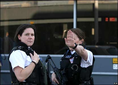 Cảnh sát đang theo dõi hành khách trên mỗi khâu trên đường ra các cửa xuất phát.
