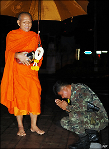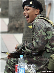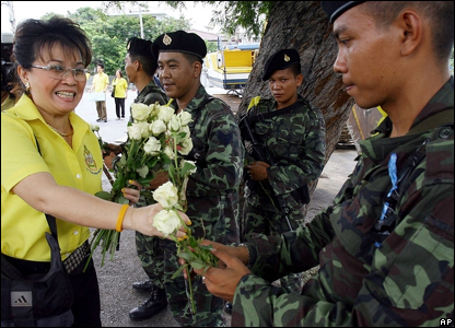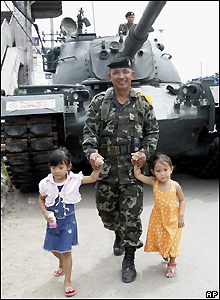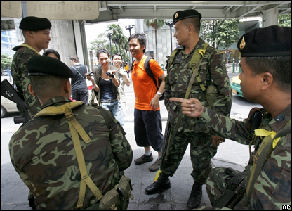 Chiều tối ngày quân đội làm đảo chính 19/9 những người lính nét mặt căng thẳng xuất hiện ở các ngả đường chính của Bangkok.