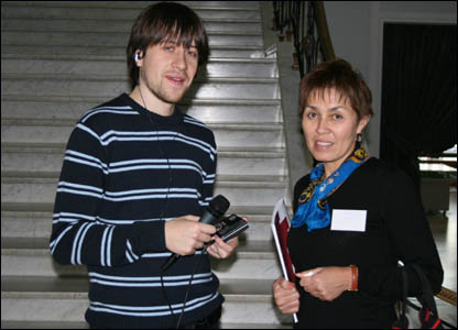 Cô Tôn Vân Anh, sinh viên Khoa Xã hội học ở đại học Tổng hợp Warsaw làm phiên dịch cho các diễn giả Việt Nam đến từ Úc, Mỹ, Pháp và nhiều nước khác.