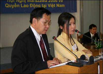 Các đại biểu từ Nam California, ông Ngô Chí Thiềng và bà Ngô Christina Bích. Họ nói họ mong muốn công nhân Việt Nam được hưởng các quyền tự do.